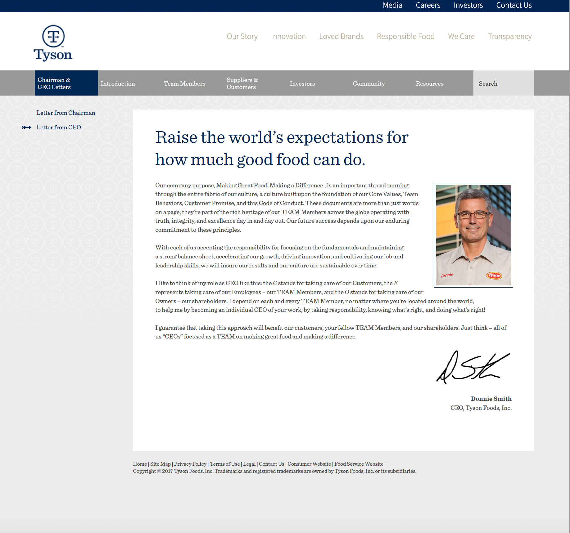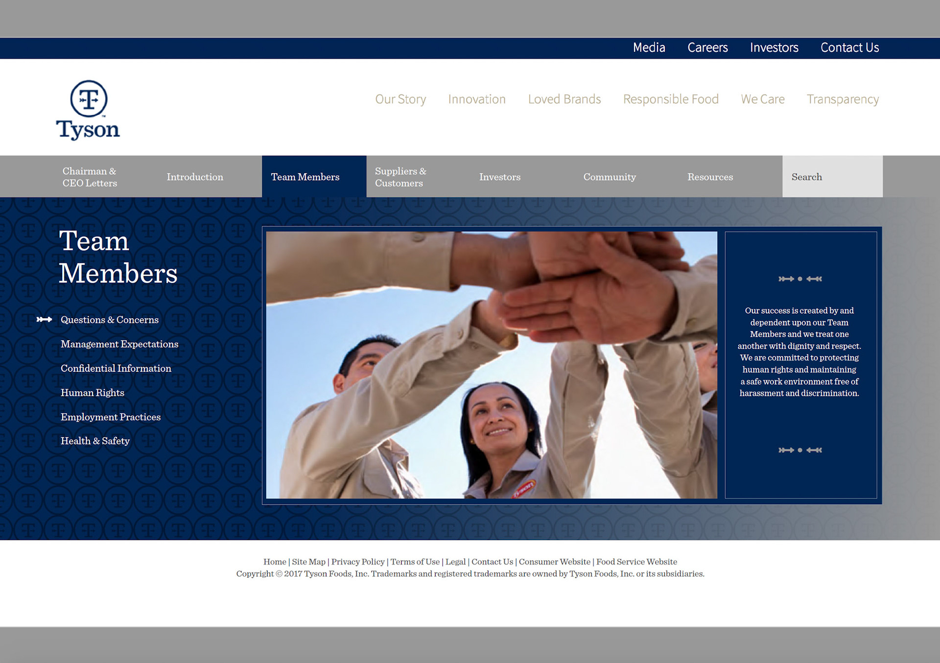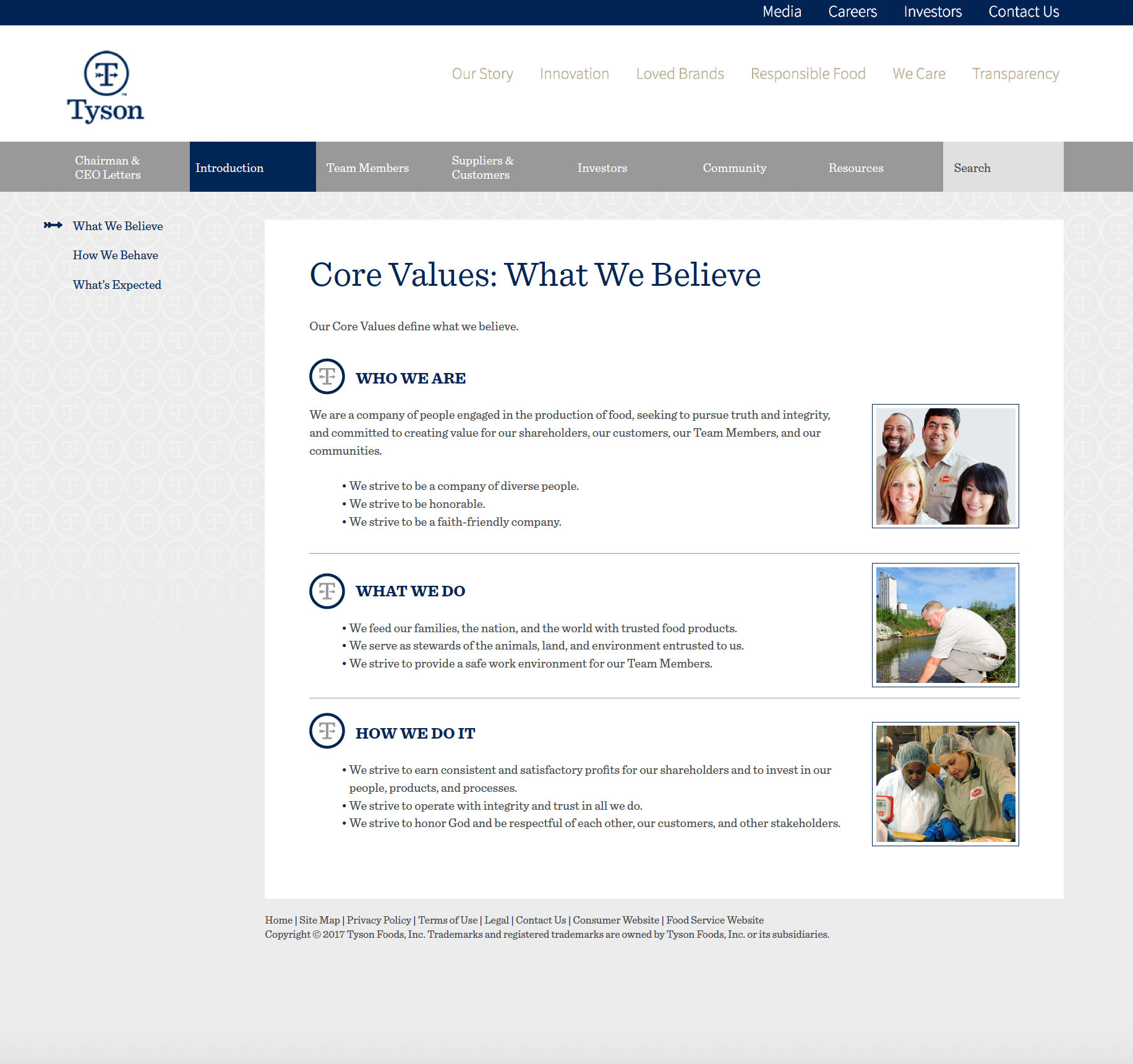 Internal Tyson microsite built to educate employees about company policies and ethics